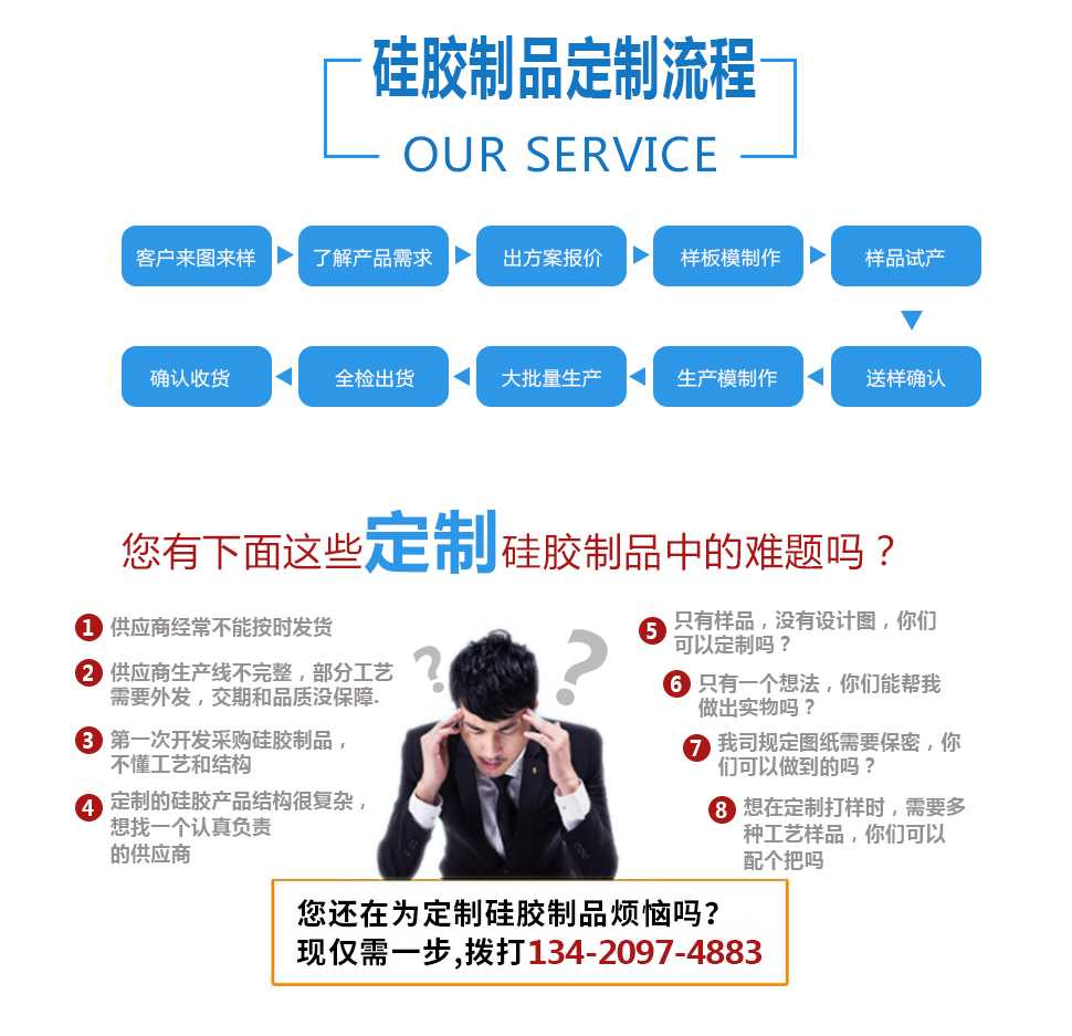 • 異形件硅膠制品實力源頭廠家,按需定制、自有模具房,多年生產研發經驗,設備齊全,工藝成熟,滿足客戶