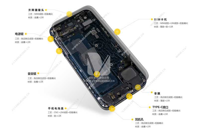 工藝:鋁合金CNC+表面處理/二次注塑成型/LSR一體成型
