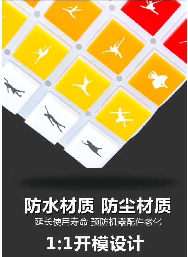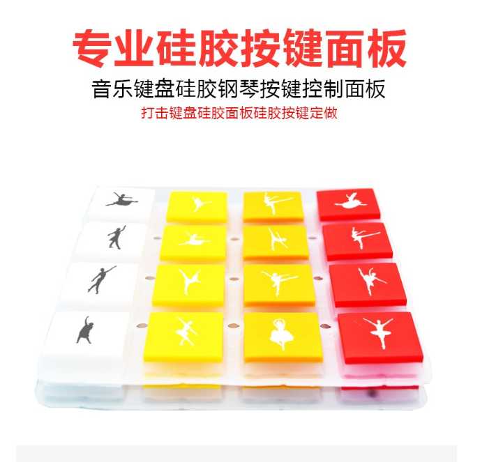 •      這款彩色硅膠按鍵采用環保級硅膠和導電硅膠組合而成,這款硅膠按鍵具有耐磨抗氧化使用壽命在10年
